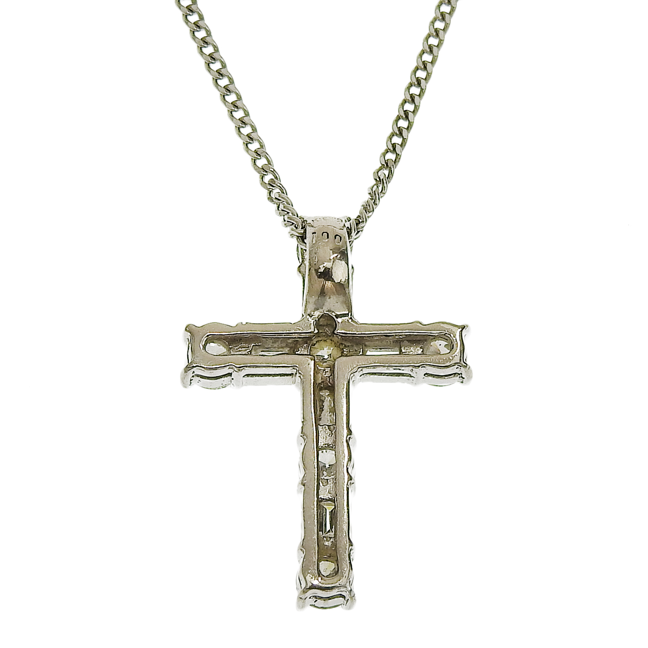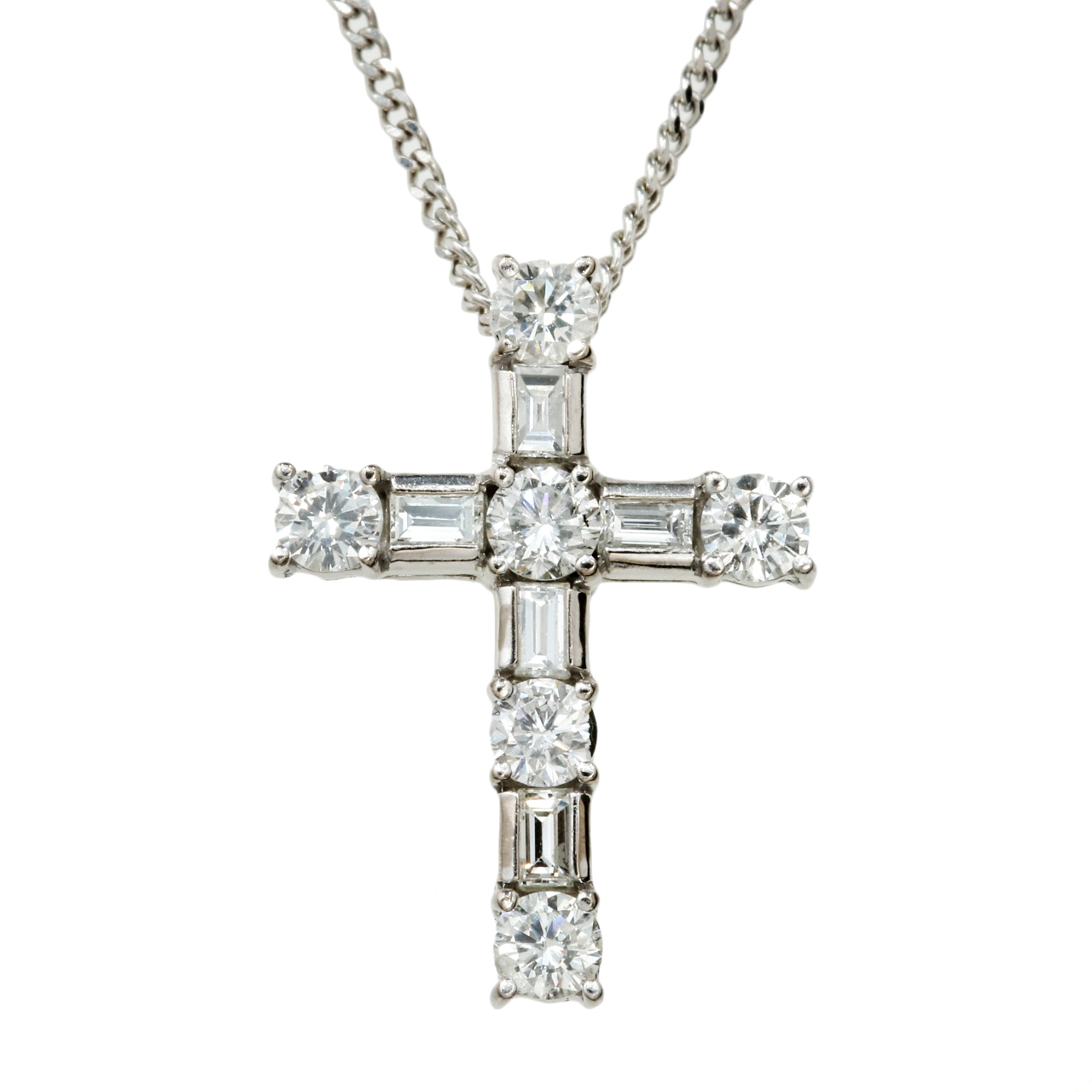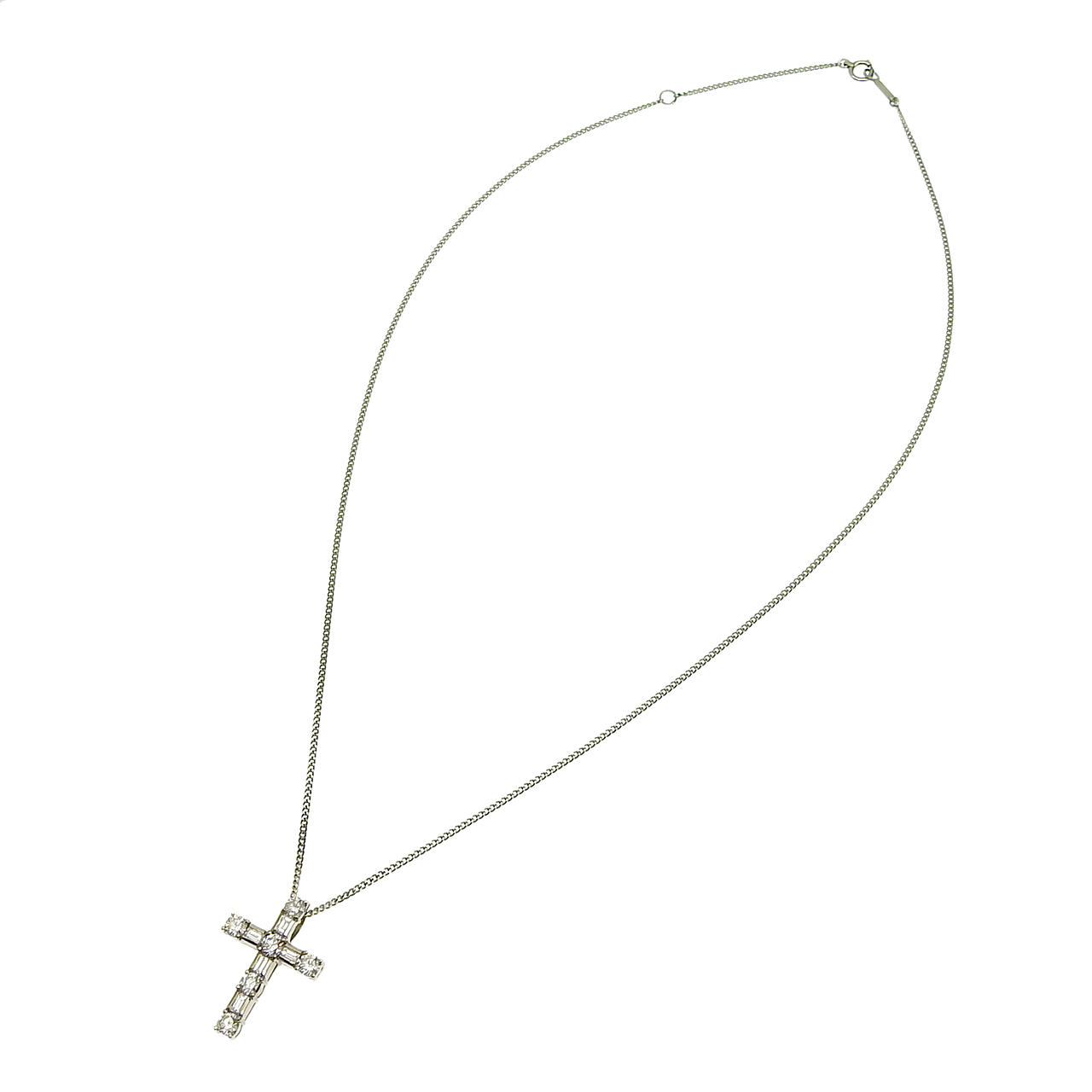 新品仕上げ Pt850/K18WG クロスモチーフ ネックレス 6Pダイヤモンド 1.00ct 44cm 18金 ホワイトゴールド プラチナ ジュエリー