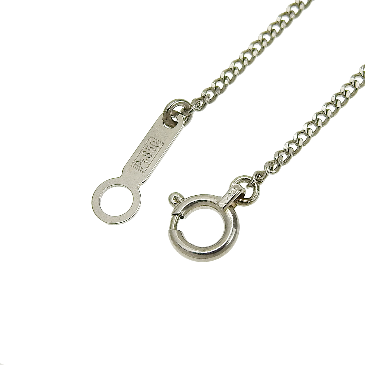 トップには18金ホワイトゴールド素材、チェーンにはプラチナ850素材を使用。
