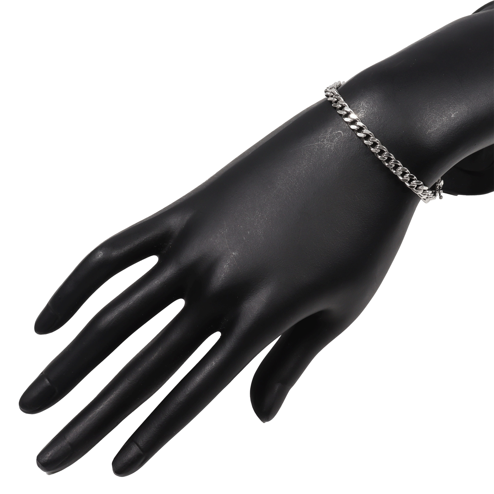 | サイズ/寸法 | (約)チェーン幅:4.5mm 厚み:2.2mm 全長:21cm(留め具開いた状態) 腕周り:19.5cm |