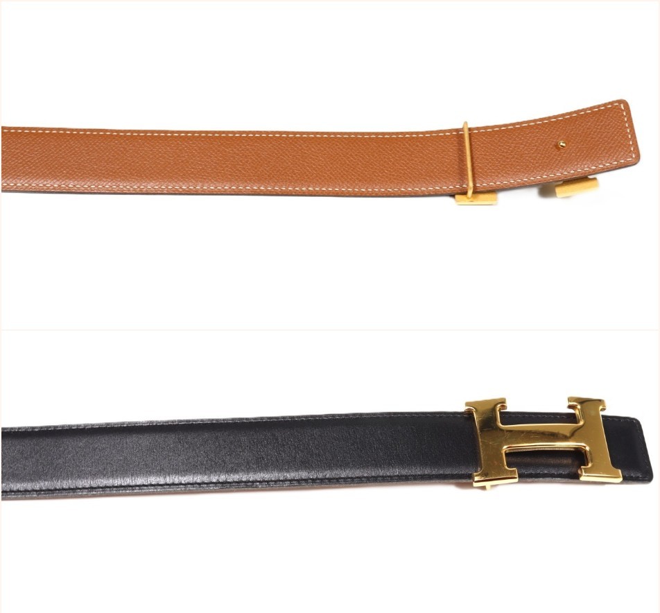 HERMES エルメス コンスタンス Hベルト リバーシブル レザー ブラック×ブラウン ゴールド金具 70サイズ □B刻印 小物 アパレル